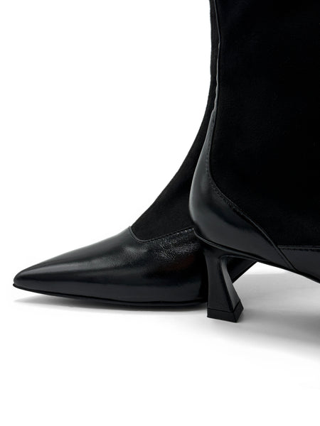 Päällinen kangasta sekä nahkaa.